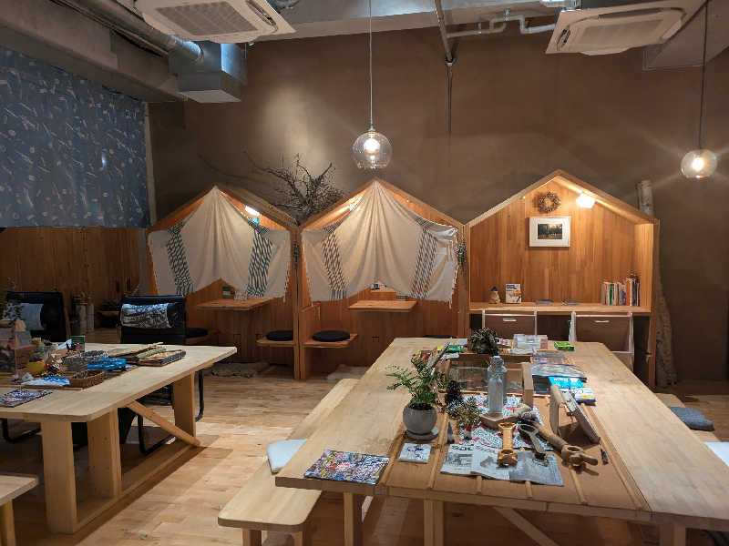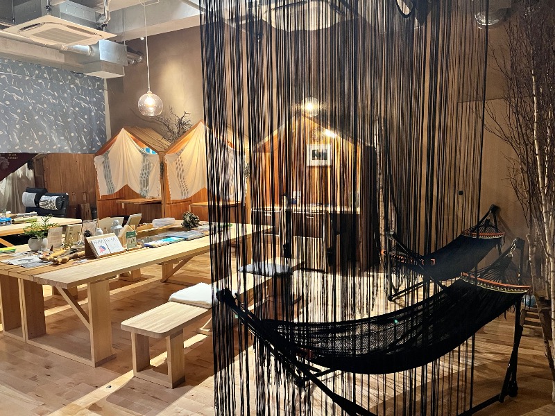 ☑️整いエリア→ 浴場のベンチも暗くていいが共用スペースのハンモックやヴィヒタベットなど色々工夫あり
