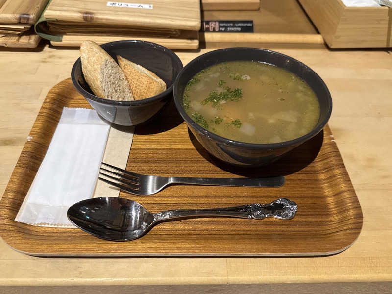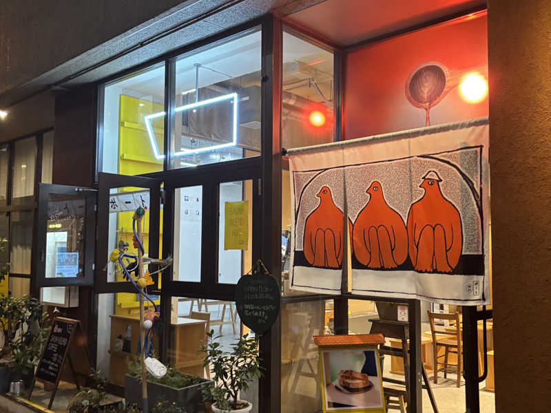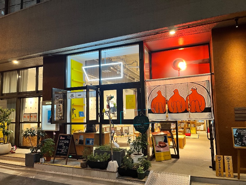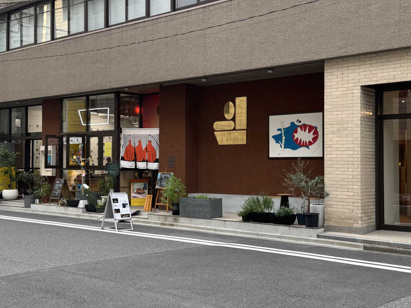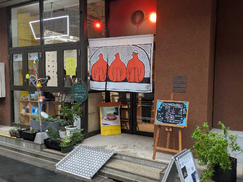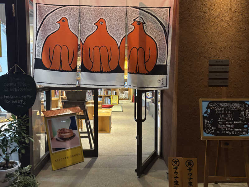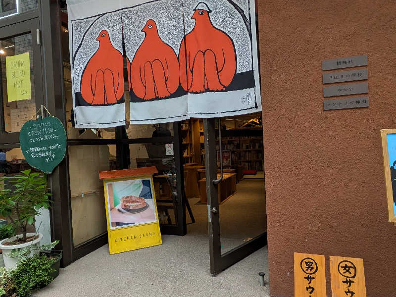 ようやく到着し暖簾をくぐって建物にイン。ぱっと見で既におしゃれな作り。建物の1階は「ほぼ日」とコラボした商品等も取り扱うカフェ「KITCHEN SAUNA」だそうで、私が到着した時も沢山の人で賑わってました。1階は後で見ようと思い、まずはサウナ受付を探すと、受付は階段を降りた地階にある様で勇んで降ります。
