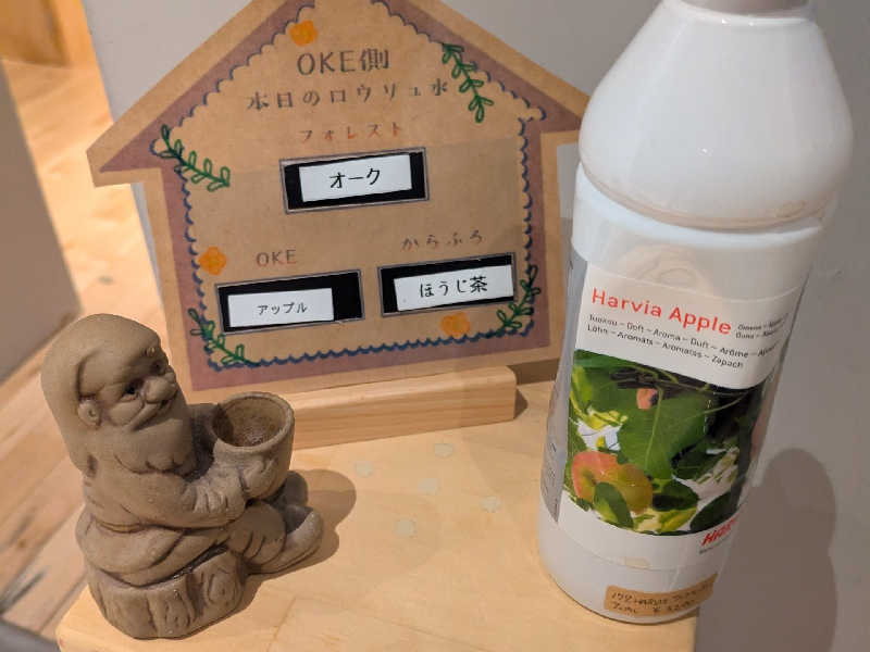 3つ目はOKEサウナ。こちらはストーブよりも席が高めに作ってあり、一番温度設定の高い部屋でしたが、それでも基本は低め。ですがロウリュするといい感じで温度があがり、これは良いかも。