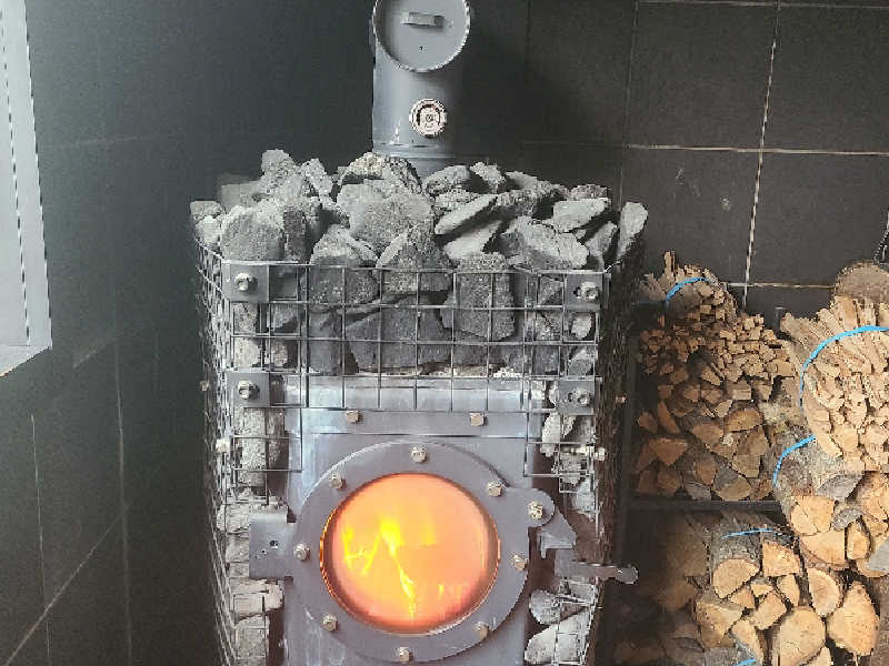 大型のMOKI製のストーブです ストーブ前は輻射熱もあり体感温度高め ロウリュすると3段目は最高に熱い 2セット目に上段で蒸されていると知ってる方々がサウナ室に入ってきました ヒロテテさんお久しぶりです