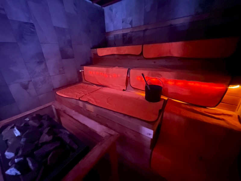 熱い方、中々骨がある。セルフロウリュ一杯でも結構熱い。夜はここで熱波イベントがあるとか。