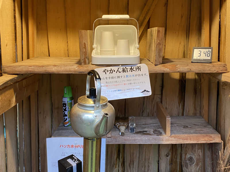 山の水も飲み放題。ヤカンの蛇口が面白い。