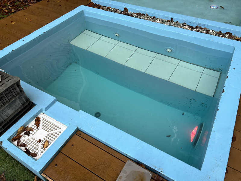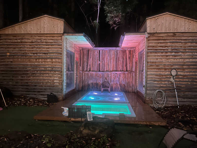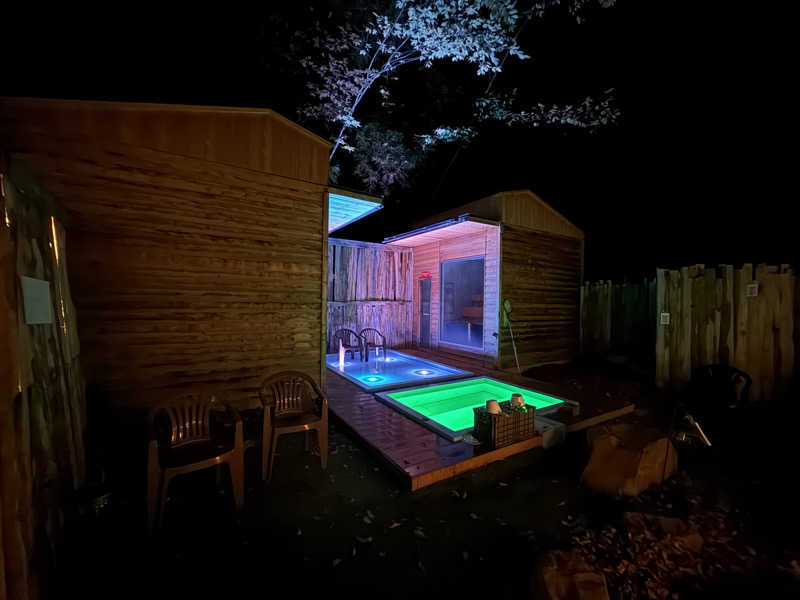 サウナ室の目の前に、子供用プールくらいの水風呂と、深さ120センチくらいの水風呂。