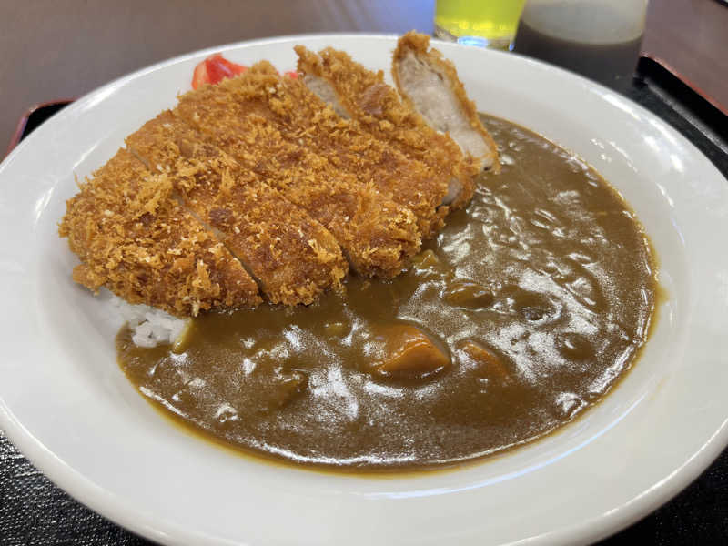 温浴施設の基本はカレーだよね👍 野菜もゴロゴロ、カツは厚くて柔らかく美味しかったです😋