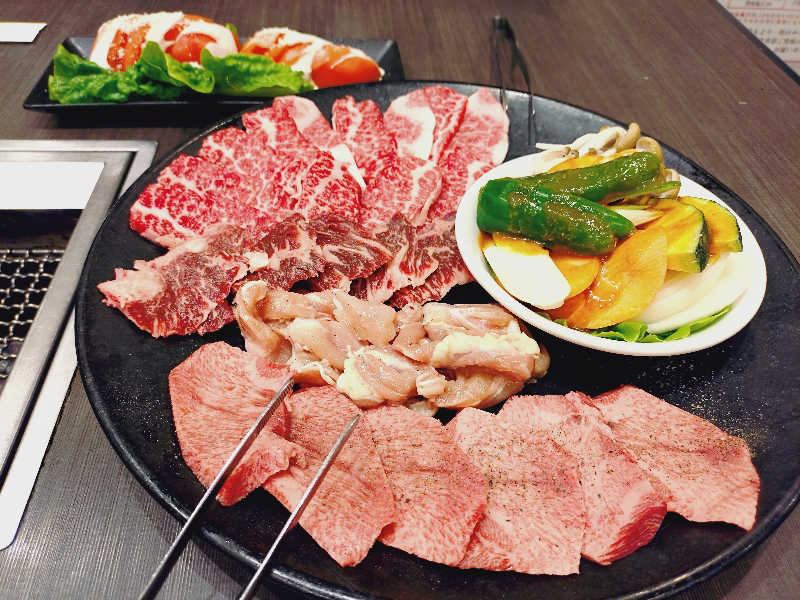 宿泊焼肉セット(小皿はホルモン)+選べるご飯もの これにカルビクッパが付きました。