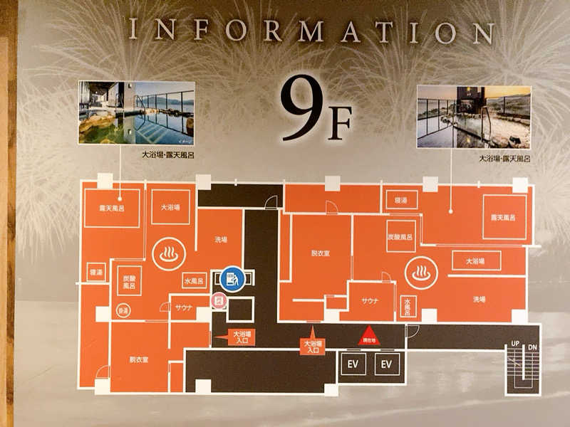 ホテルまで徒歩2〜3分くらいの🅿に車を停めリブマックスOceanさんへ。フロントで入浴料金の精算を済ませてエレベーターで9階の大浴場へ。女湯は…ハイ安定の海側💦