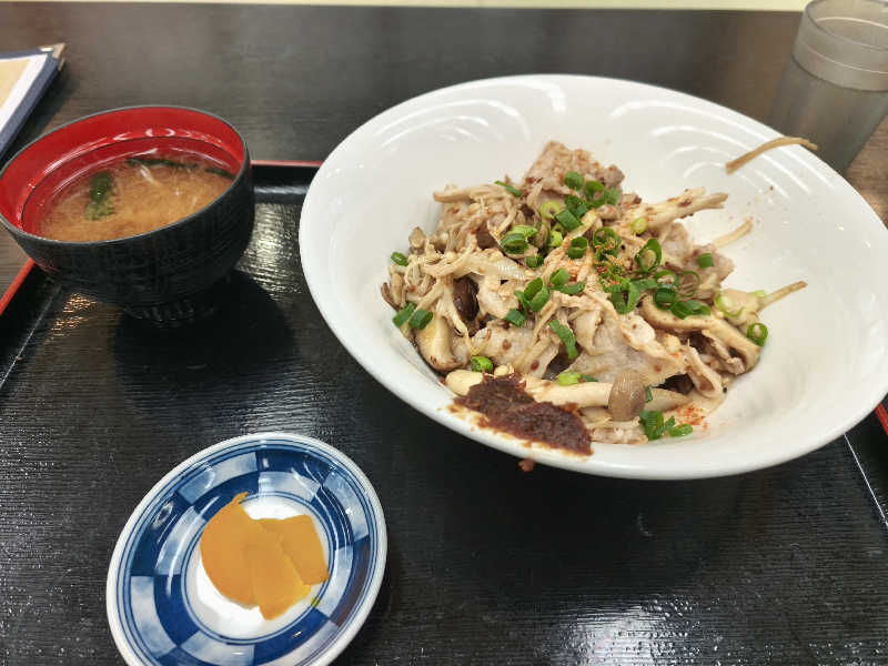 味噌のピリ辛具合が暑い日にピッタリ✨️🌶 お味噌汁とお新香付き