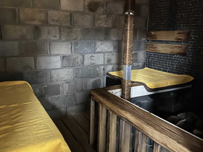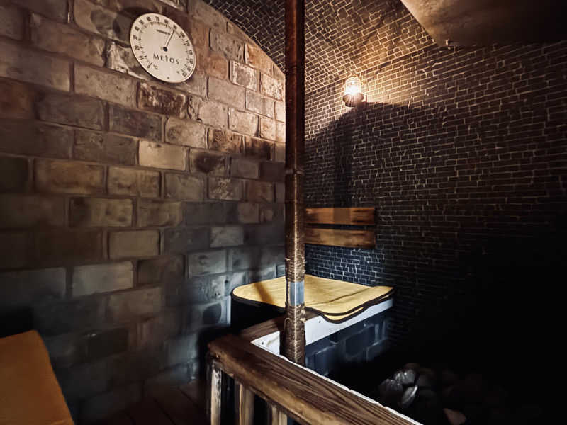 狭さと上のアーチのせいかロウリュウがバチバチにくる。一杯で十分。