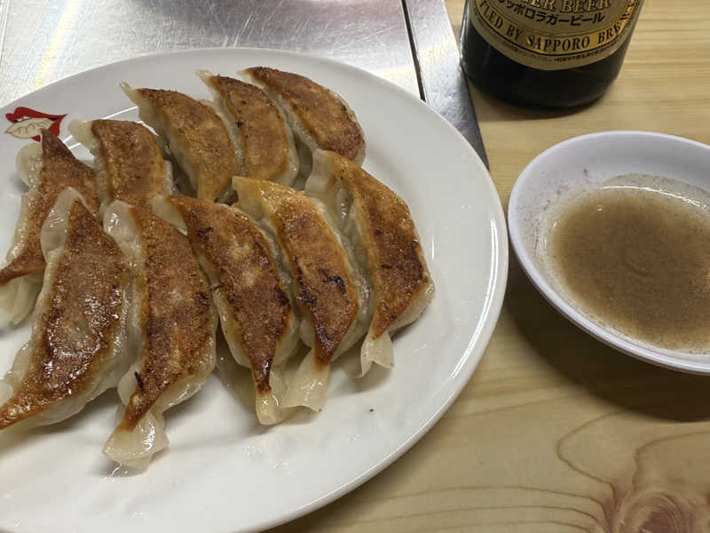 タイムアップ後、ぎょうざやらをつまみに一杯。