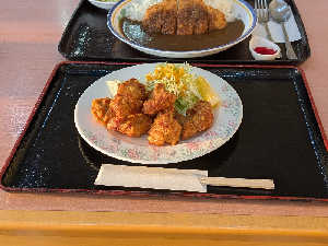 カツカレー大盛に+唐揚げ単品をつけちゃいました。 カツカレー大盛だけでも十分だったかも?(^_^;)