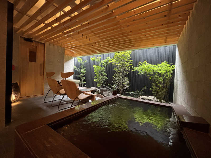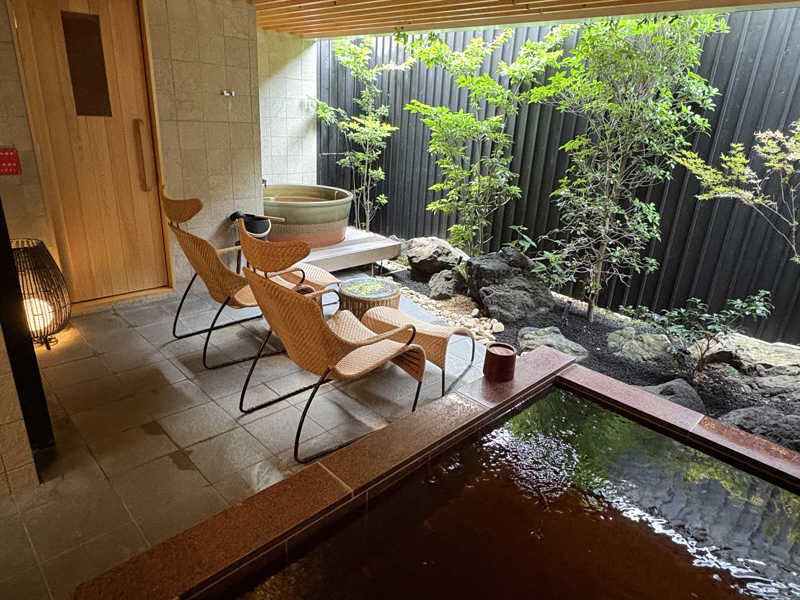 部屋の外を出れば園庭や、バレルサウナ、水風呂、露天風呂がそろっていて、チェックインから24:00時まで入り放題!!!!!!(朝は6:00〜チェックアウトまで)