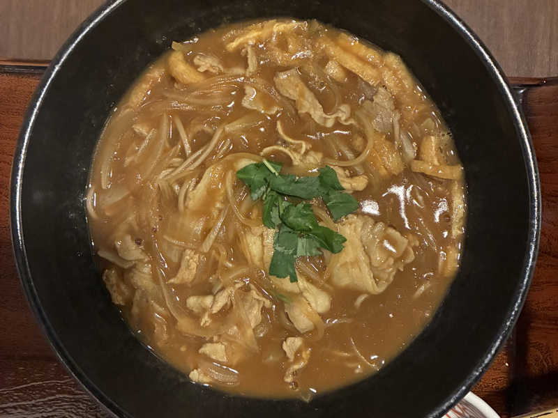 マイルドなお味。黒カレー蕎麦に慣れていると物足りない。