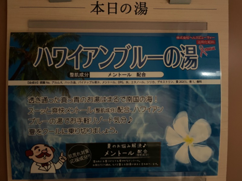 今日はハワイアンブルーの湯