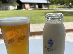出口でセルフ購入できる。サイダー300円、リンゴジュース400円。