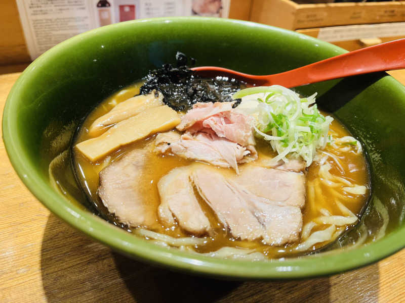 魚介系出汁だけど、白エビなのかな??? チャーシューと温玉はンマかった〜。ごちそうさまm(_ _)m