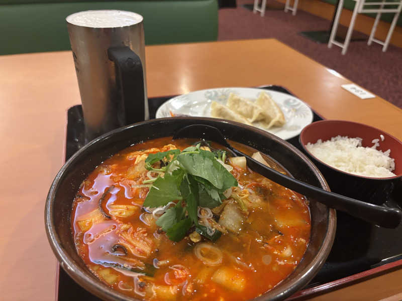 プラス300円で、餃子とライスがセット。ラーメンの後に、ライスを入れてカルビクッパ