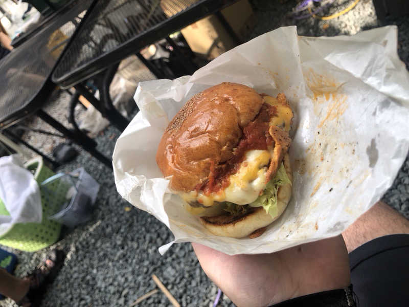 チャンDのハンバーガー🍔 野菜のジューシーさとチーズの塩味がハンバーグを引き立てる😋