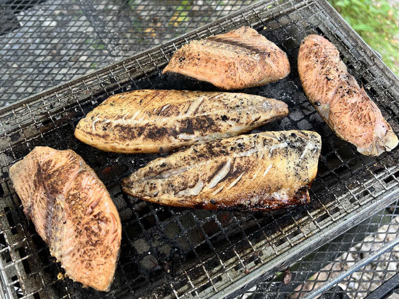 サ友が炭火焼きしてくました🔥丁度いい塩味が食欲をさそります😋