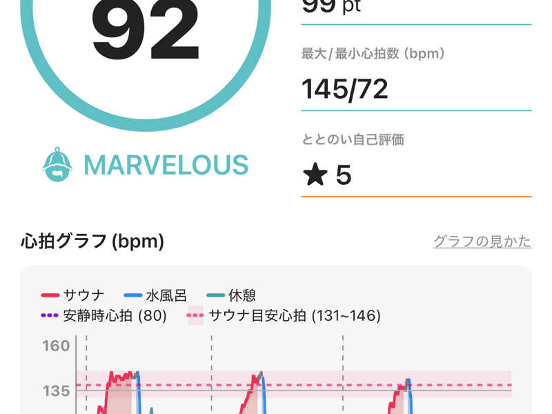 水風呂の時点で整いそうになって、身体を拭いて、ゆらゆらリクライニングに横たわると、、、リクライニングの揺らぎが実際には収まっても、感覚ではずーっとゆらゆらした感じで、瞼が重くなって、、、そのまま整いました〜。
