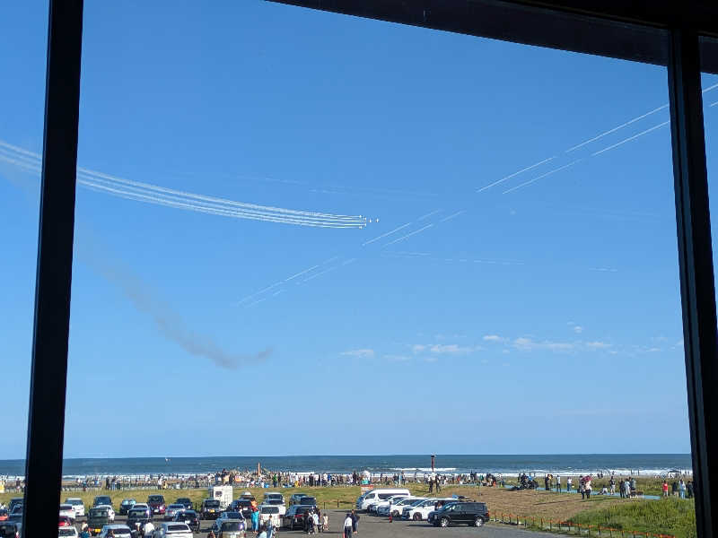 「大開運」で有名な女将さんへのお目通しは叶いませんでしたが、オーシャンビューの露天風呂と休憩食堂、大洗の美味しいお魚、さらに前座(?)のブルーインパルスの展示飛行と、メインの花火を堪能できました!