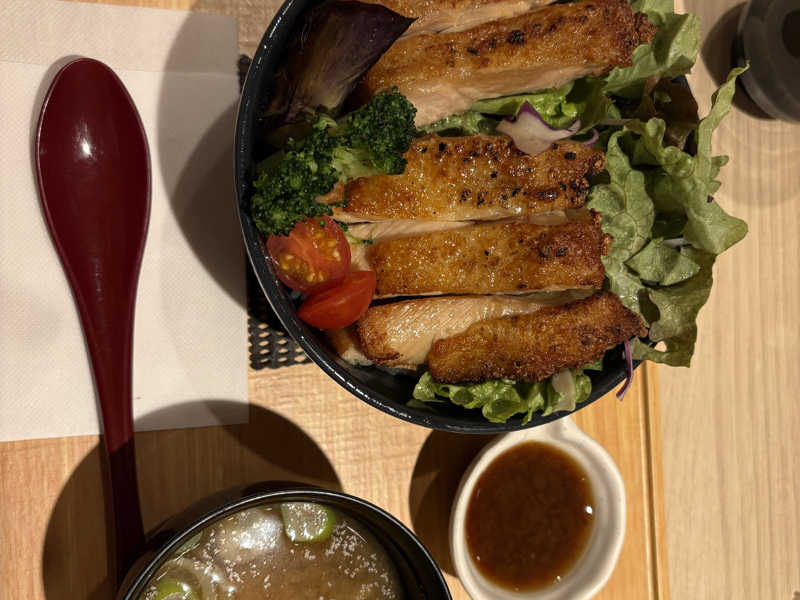 チキンが外パリパリ中柔らか、ソースをかけてめっちゃ美味しかった