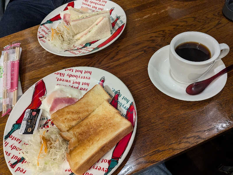 寝る前と翌日に。マットも気持ち良いので爆睡。翌朝9時にチェックアウト。サ飯は喫茶店でモーニング。
