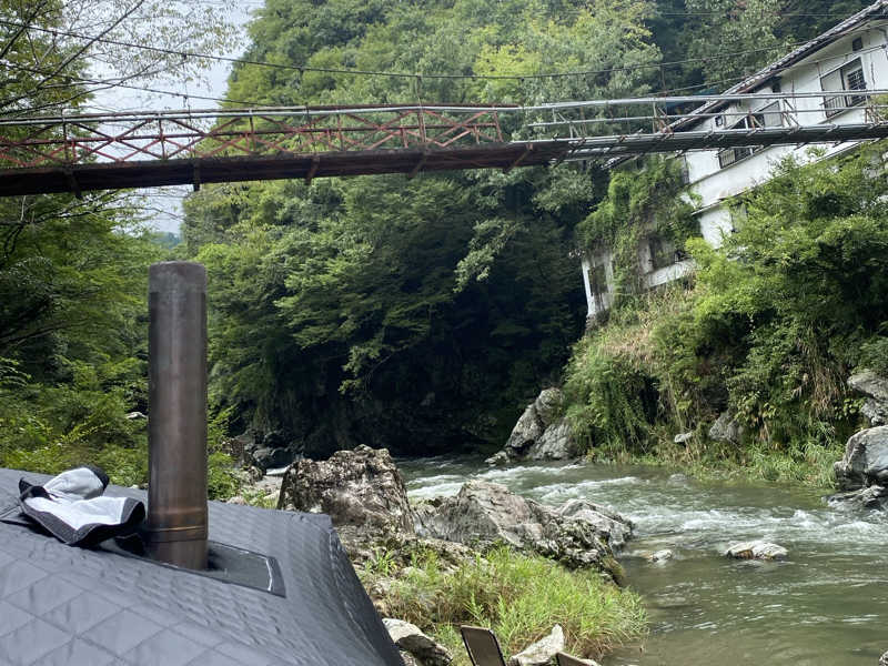 テントサウナ、タープテントが常設されており、真横には天然川が流れております。