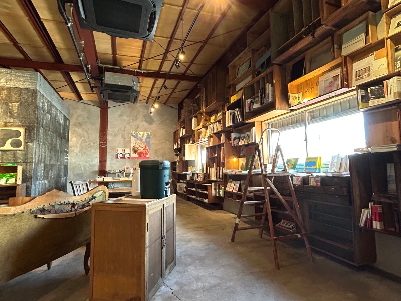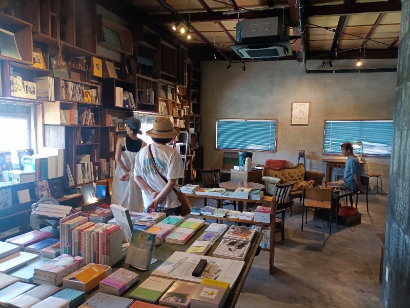 こちらに来る前に、知り合いに教えてもらった書店兼喫茶の「栞日」さんに寄り道。向かいの銭湯♨️(サウナはない)の経営も継承しているそうだが、表の見た目は普通に電気店。その前に行ったランチのお店もそうだけど、松本ってホントリノベが素敵なお店が多い。