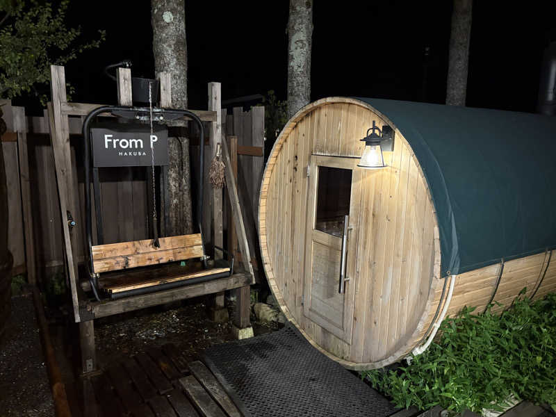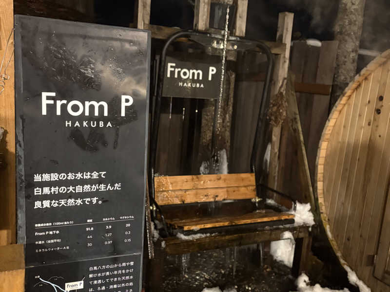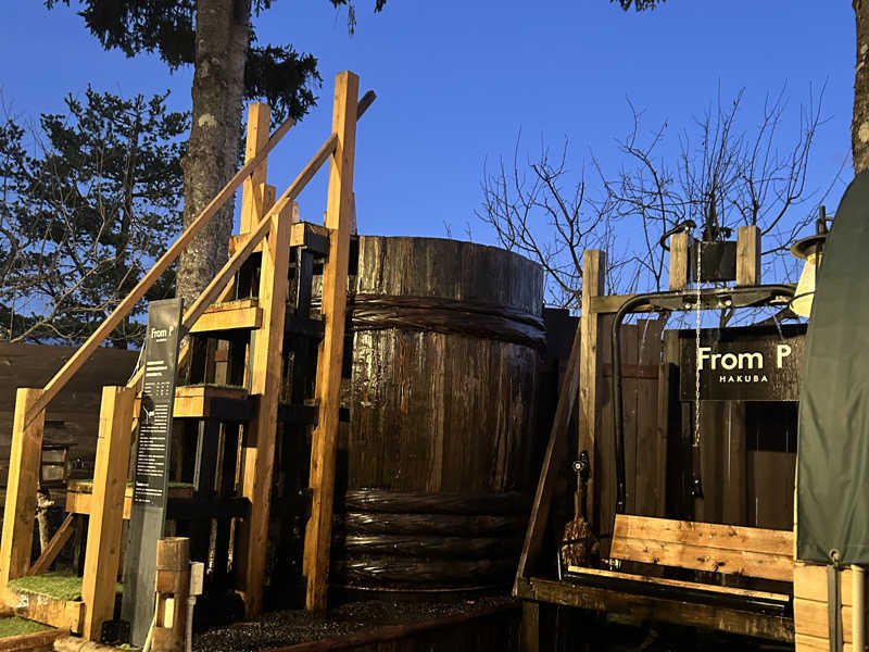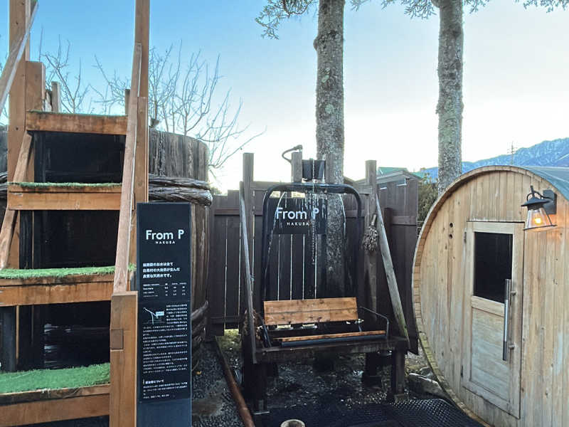 水風呂はなんと深さ2mくらいの桶。頭まで一気に沈み込むあの瞬間が最高でした。白馬の井戸水を使っていて、かなり冷たいのに体に優しくて気持ちいい。