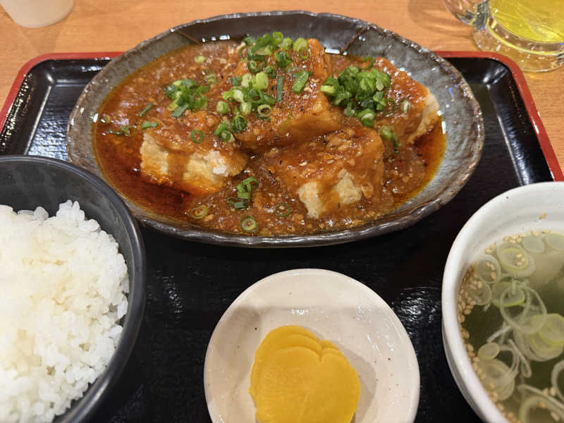 ご飯大盛り 箸で持っても型崩れしない揚げ豆腐と とろみの強い麻婆餡を ご飯と一緒にかきこむ