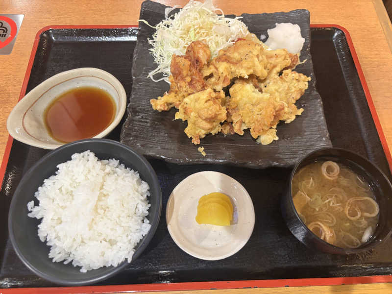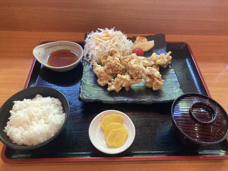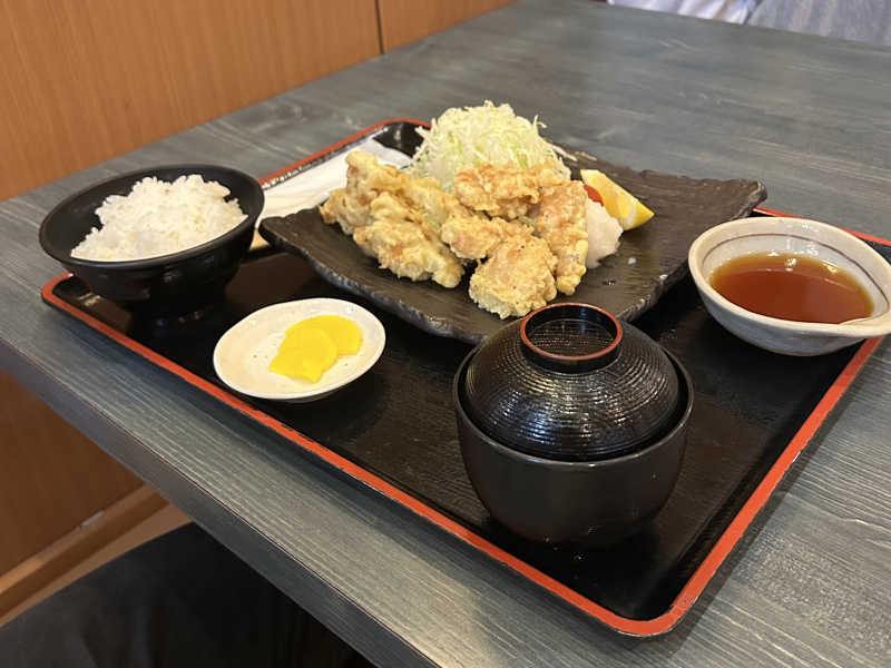 にんにく風味のとり天、おろし天つゆが抜群に合う、レモン絞っても美味しい