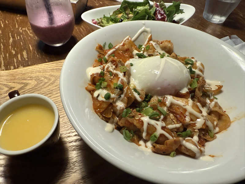 タレたっぷりめ。🤭コーンスープ付き🌽 勉強で失ったエネルギーを一気に補給🍚