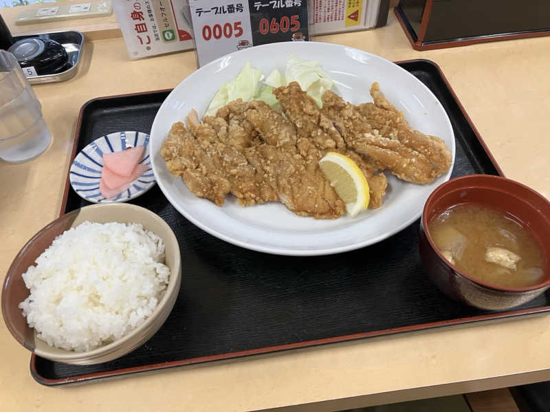 和食処あずささんのレギュラーメニュー。しっかりと味が付いている為レモンかけるだけで美味しい😋