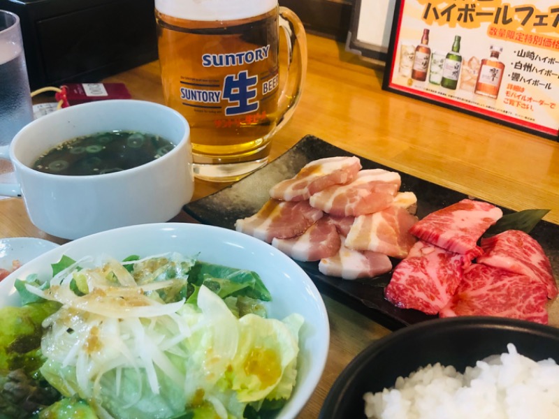 カウンターで一人焼肉🍖 LINEのクーポンでトリスハイボールを 頂きました☺️