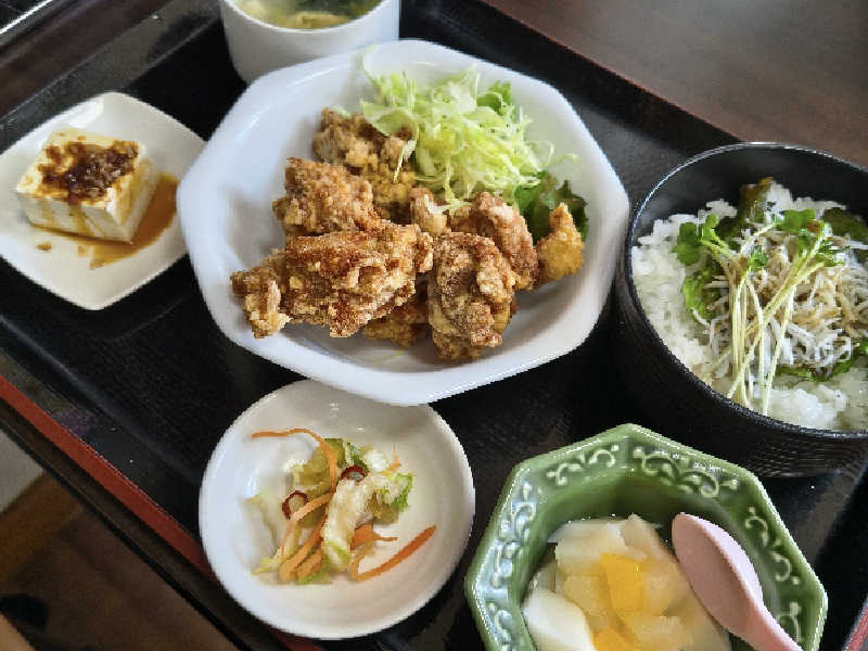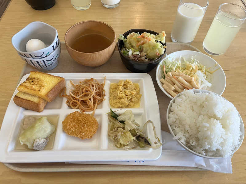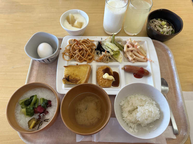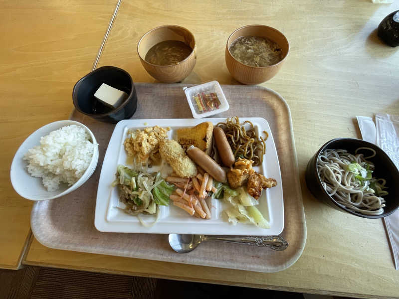 蕎麦とたまごかけご飯最強! スープも和風で具だくさん、美味しい