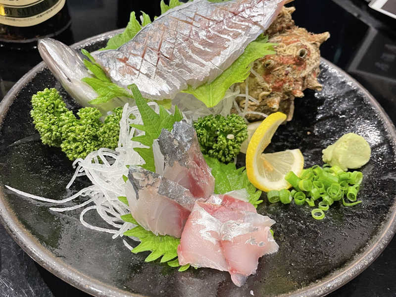 和食処あずさの お🉐なドリンクつきセット 天ぷら🍤は抹茶塩で食べた 馬刺し最高😊