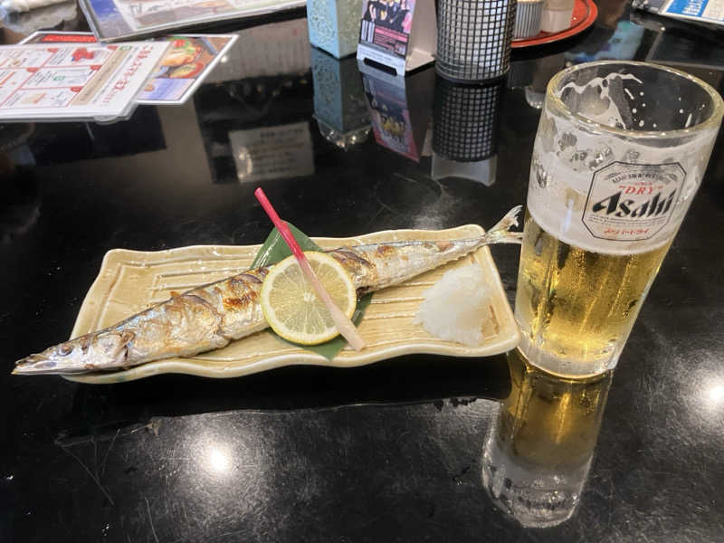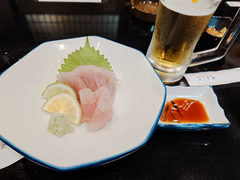 サウナで汗カキカキ🥵後のキリンの生麦酒と金目鯛の刺身···何も言うことはありません、最高です🫰
