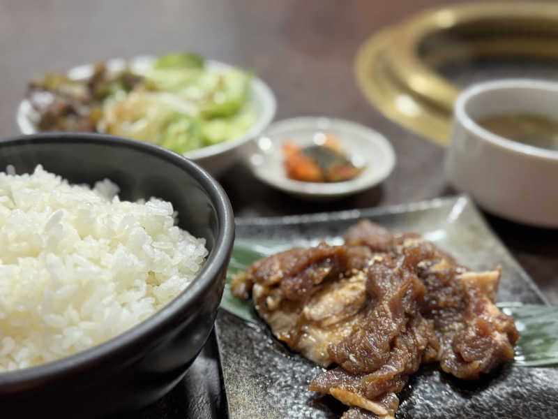 濃いめの味付けがされた一品。大きなナスと豚肉3枚ずつ入っているボリュームのあるご飯。美味しいかった!