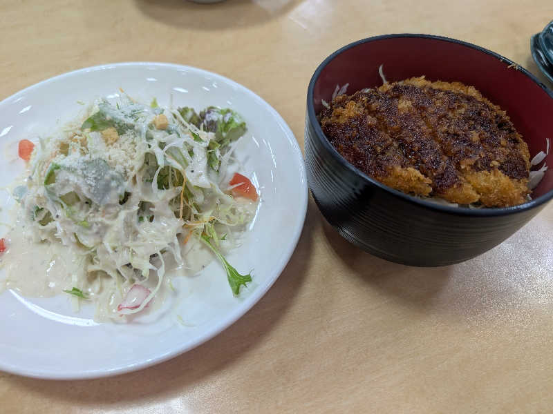 シーザードレッシングと粉チーズが ガッツリかかってて野菜の味せず笑 ミニソースカツ丼は味噌汁の御椀