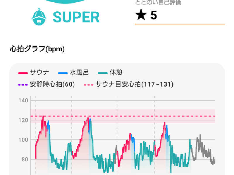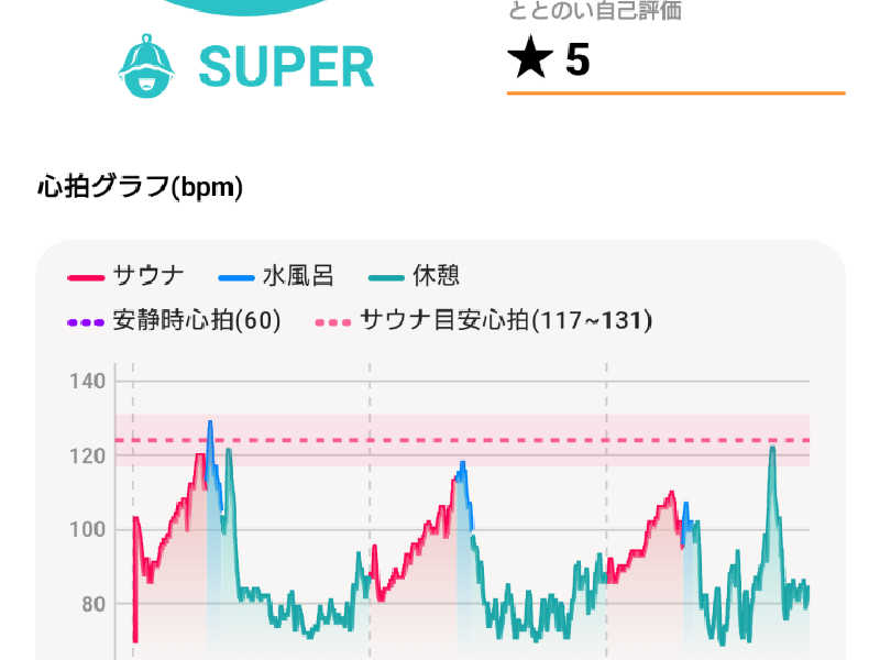 ①ミストサウナ10分 ナイアガラ水30秒 内気浴5分126bpm