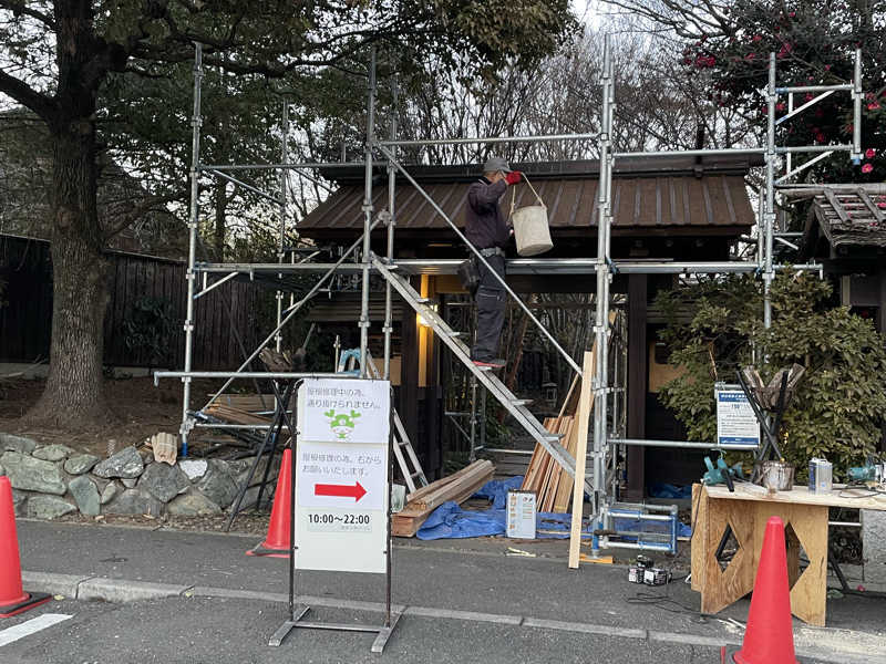 クルマを停められる場所があとほんの数台、からして想像通りの混み様。しかし、そこまで激烈に混雑しているでもなく、サ室も50%程度の入り。