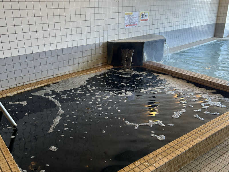 温泉は黒湯。すごい、この辺でも出るんだ! しかも結構濃い。