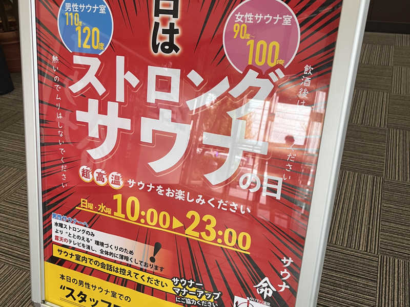 この日は日曜日で23時までストロングサウナセッティング(110〜120℃)になっていました。
