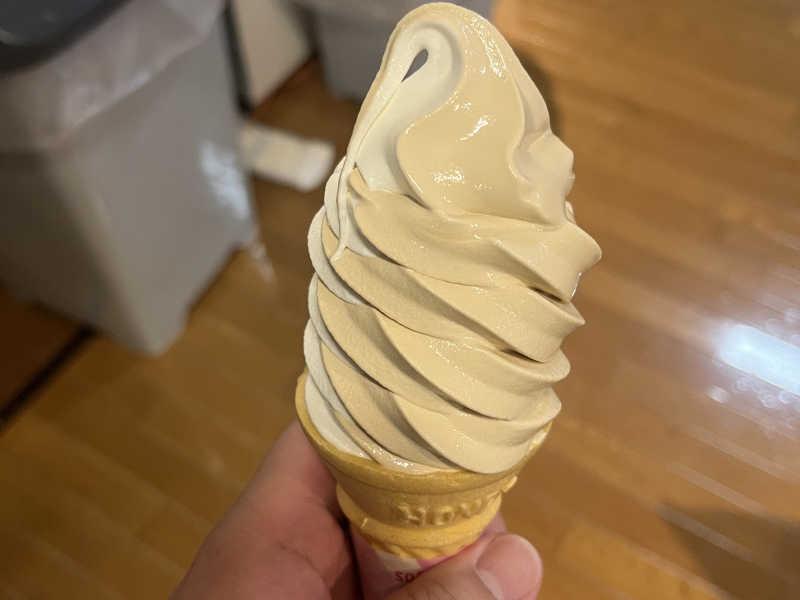 ここはソフトクリームの美味さにも定評あり。塩キャラメル&バニラのミックス味、最高!