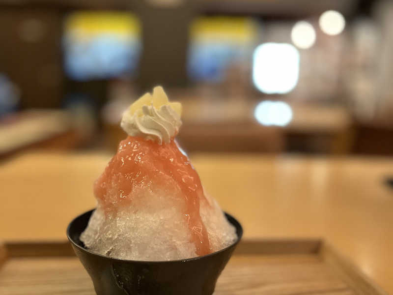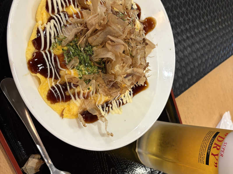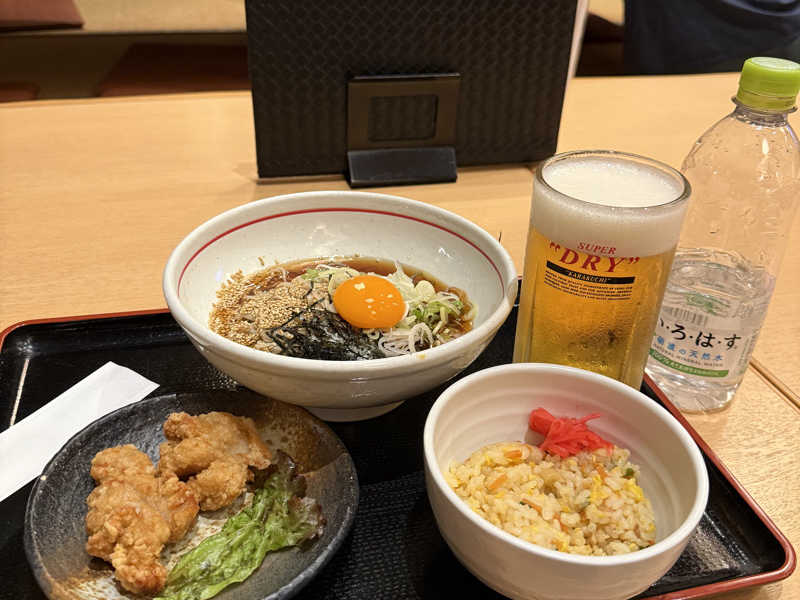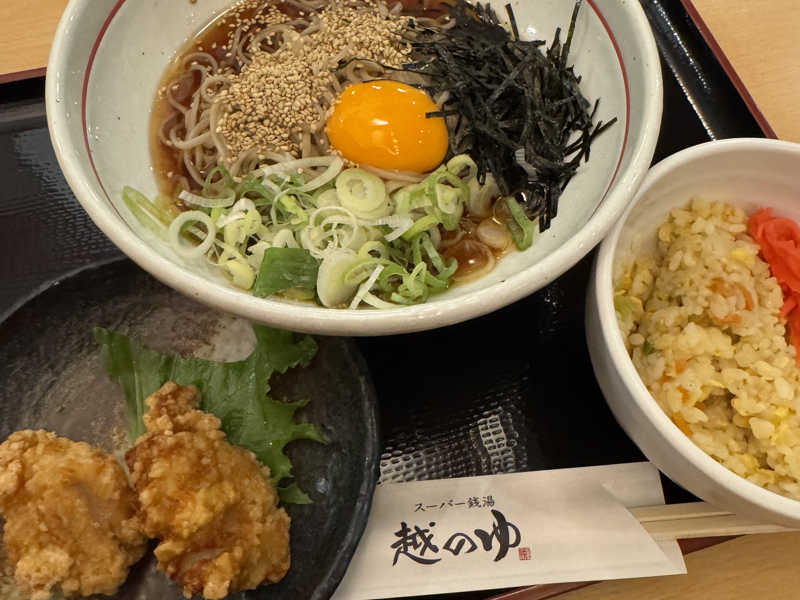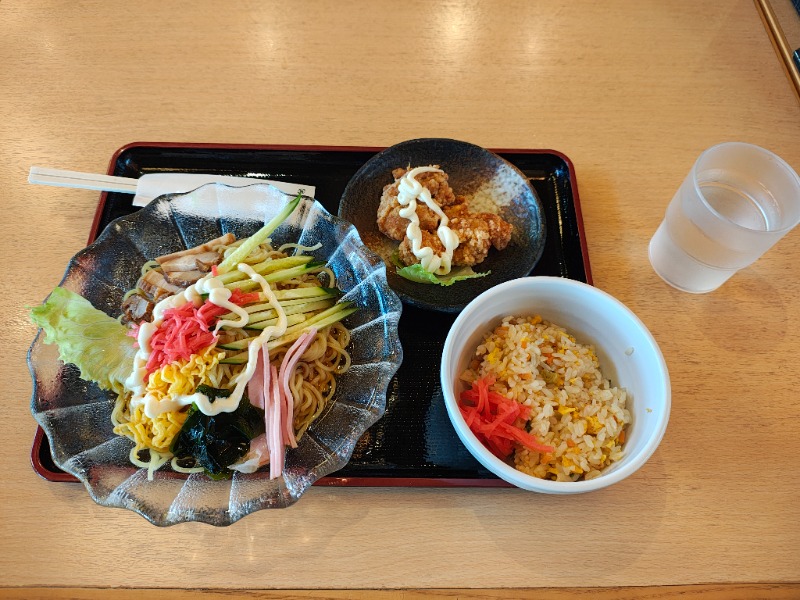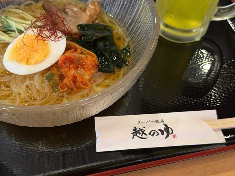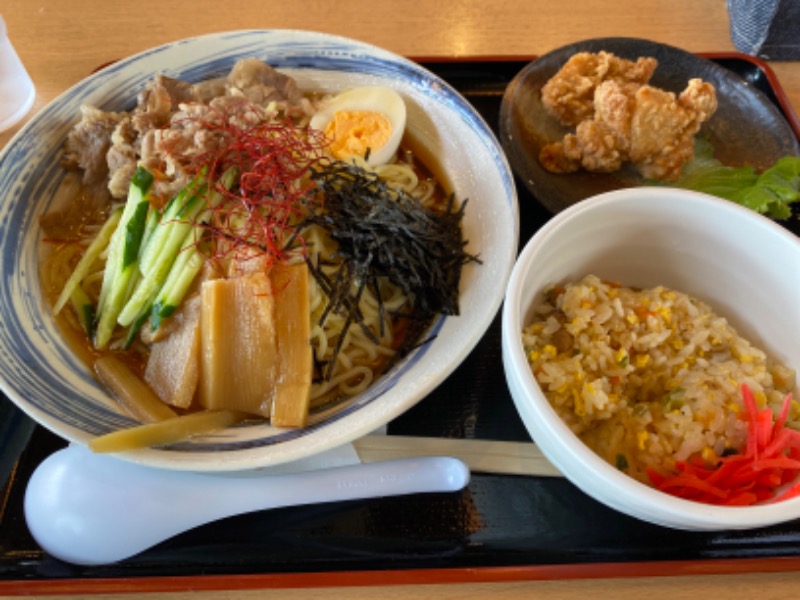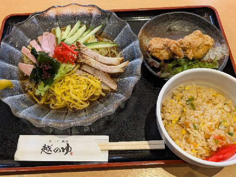 冷やし中華は、越の湯だけにコシがある☺️唐揚げニンニク効いてます♪