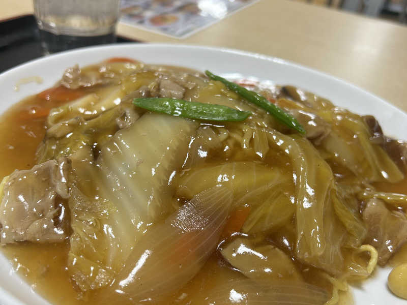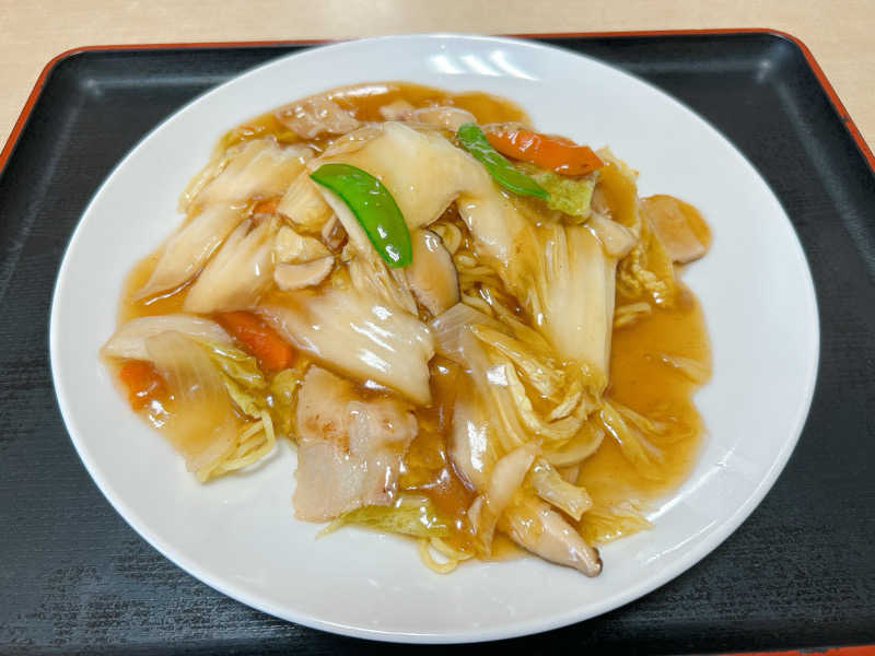 安定の湯の花あんかけ焼きそば。みんなあんかけ焼きそばに練りがらしつける派?