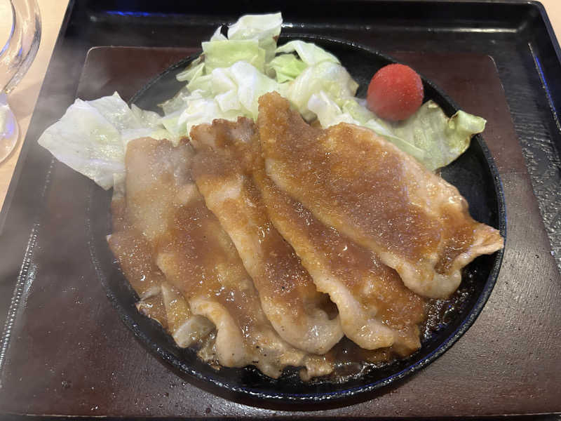 予想外の生姜焼きだったけど美味い。アツアツ鉄板でしなしなになったキャベツも良し!