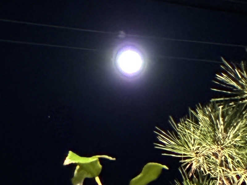 露天風呂からまん丸なお月さんを観ながら、お湯を楽しむ。暗さは充分だが、高さが微妙。多分20時あたりがベストだったのかも。