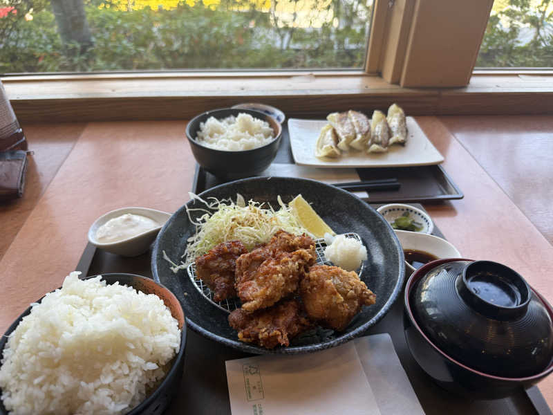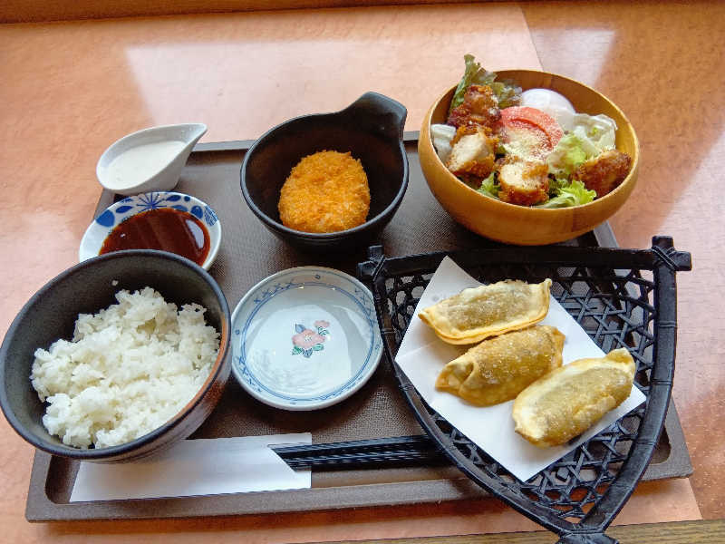 品数多く食べたいので合わせ技です。 シーザーサラダには唐揚げも入ってます。