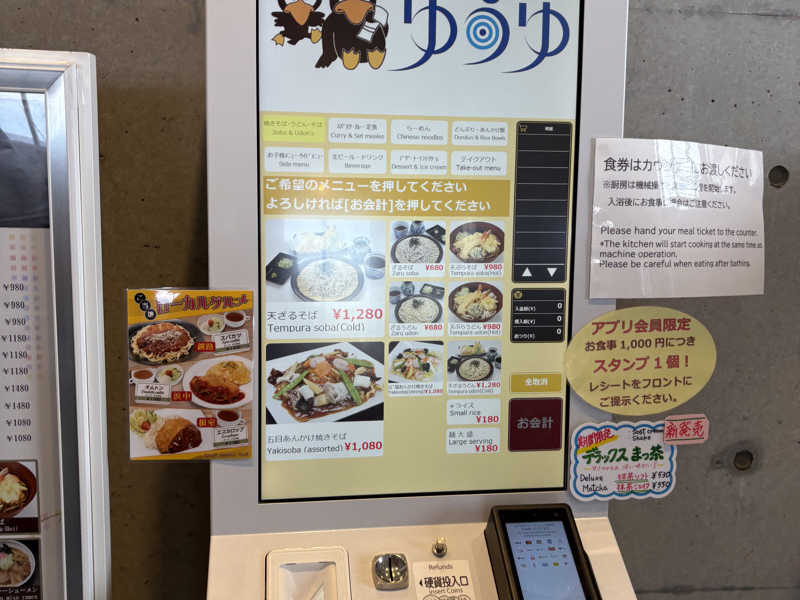 入湯の券売機前の列を後目に受付にてアプリ回数券を提示し入場。